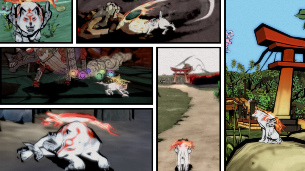 Um título que também recebeu o reconhecimento de clássico cult foi Okami, trazendo na reta final da sexta geração uma visão artística bastante impar. O grande chamativo inicial é sua parte visual, que utiliza texturas em cel-shading — muito populares em jogos com estética de quadrinhos/mangás — que aqui é utilizado para emular os antigos quadros de arte japonesa, a exemplo as do movimento Ukiyo-e, em uma historia intimamente ligada a sua mitologia.