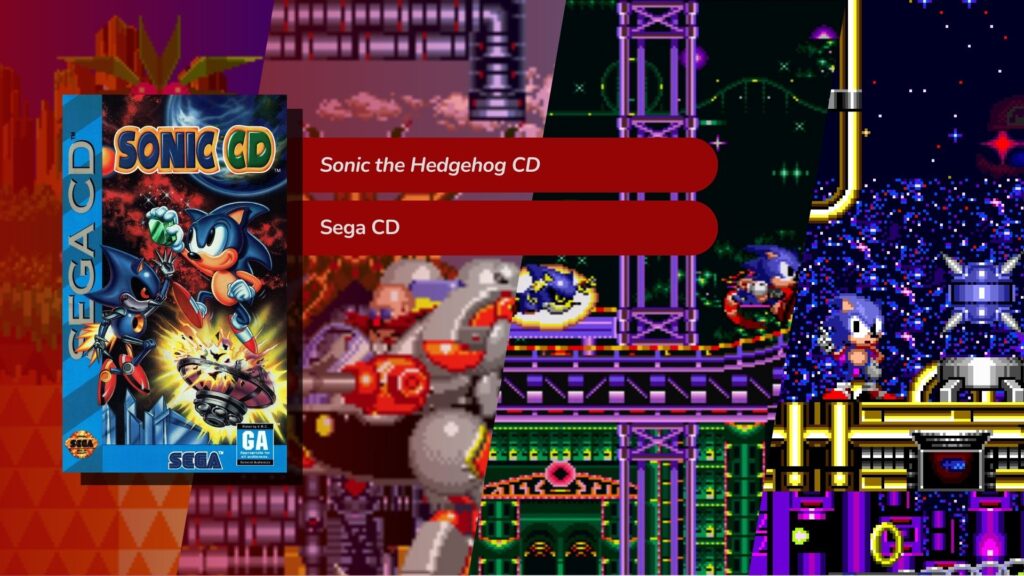Sonic CD mantêm as bases de Sonic the Hedgehog (1991), porém estende a jogabilidade em alguns conceitos. Por particularidade, a viagem no tempo, fortemente inspirada por De Volta ao Futuro (1985), na qual alterações no passado causam alterações no futuro. Amy Rose e Metal Sonic surgem como personagens marcantes. A versão robótica do protagonista parece ter custado as reservas do Dr. Robotinik, pois o mesmo se encontra com as máquinas masi fracas já constridas na franquia. Aparentemente, quis cortar custos de produção e acabou gerando um maquinário de baixa qualidade.