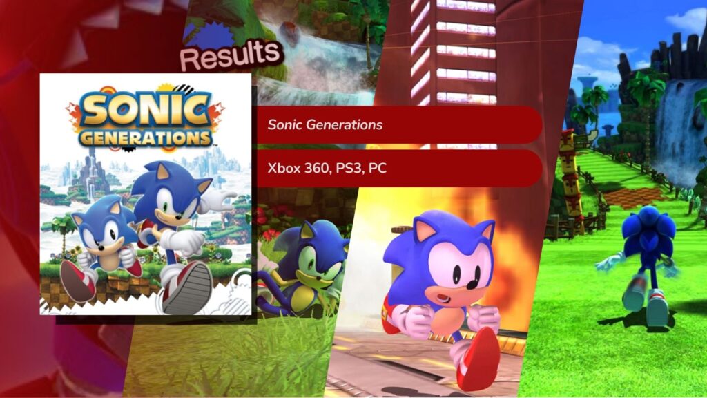 Comemoração de 20 anos da franquia, Sonic Generations também é um prato cheio para fãs e uma excelente porta de entrada para que novos jogadores conheçam a franquia. Utilizando-se de dois estilos de jogabilidade, remetendo as fases clássicas e modernas do personagem, o jogo adapta fases famosas dos diversos títulos da linha principal do azulão. Transportando os jogos modernos tridimensional para uma reimaginação dos cenários em duas dimensões, como também os clássicos cenários bidimensionais e as reimaginando para um estilo moderno.
