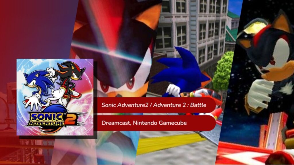 Este título carrega o amargo gosto de ser o último produzido para um console da SEGA antes da mesma abandonar o ramo de fabricação de harwares de mesa. Em compensação, é facilmente uma das melhores experiências dentro de toda a saga do ouriço azul. Seguindo os moldes narrativos de seu antecessor, Sonic Adventure 2 apresenta uma história mais madura, com a presença dos personagens Shadow the Hedgeghog, que imediatamente se tornou o personagem mais popular, e Rouge the Bat. Dividindo a narrativa em apenas dois momentos, contada pela perspectiva do Team Hero (Sonic, Tails e Knuckles) e o Time Dark (Shadow, Dr. Eggman e Rouge). Com Tails e o Dr. Eggman herdando a jogabilidade do E-103 Gamma, do título anterior.